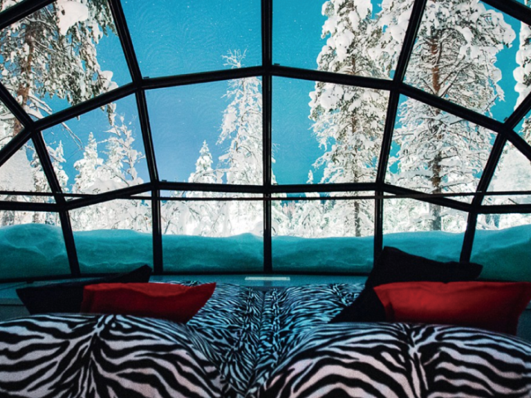 位於芬蘭的拉普蘭地區,是一個獨特的住宿體驗。提供透明的圓頂,讓客人在舒適的室內享受壯觀的北極光。遊客可以在寧靜的環境中,觀賞星空和極光。冰屋內部設施齊全,提供溫暖的床鋪和現代化的設備,讓人感受到冰雪奇境中的舒適與奢華。