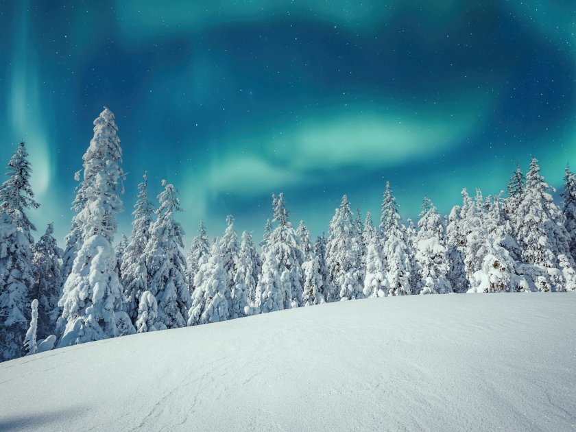 【黑夜追蹤北極光】黑夜中乘坐專車前往極光觀賞營,追蹤如夢似幻的北極光,由專人解說北極光的傳說與資料。在溫暖營火會中享用熱飲及小吃。
