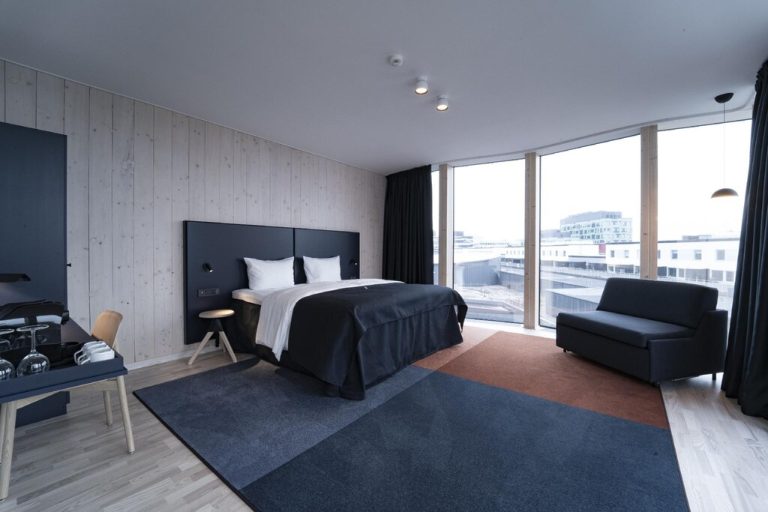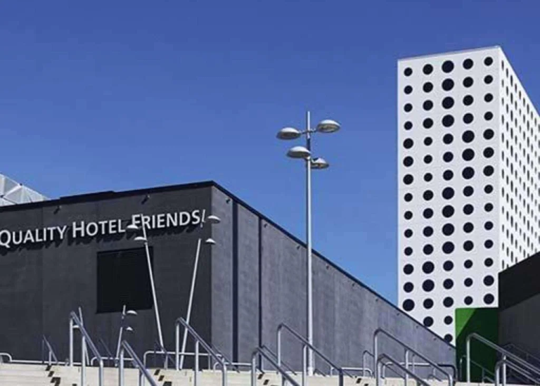 位於斯德哥爾摩的 Arenastaden 區。酒店設有健身房、兩個桑拿和一間位於 25 樓的餐廳,提供免費 WiFi。酒店的房間配備平面電視、工作桌,大多數房間擁有獨特的圓形窗戶。