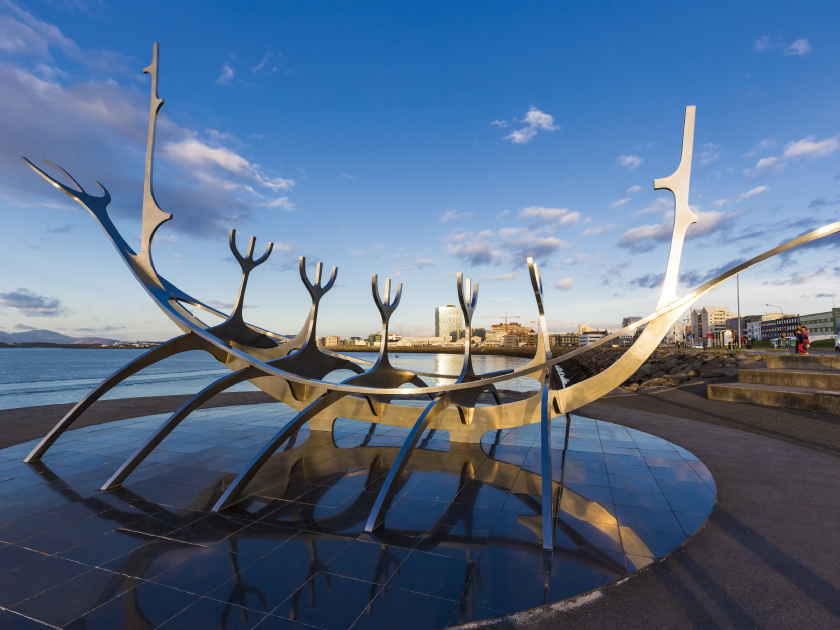 【太陽航行者】此雕塑是為紀念雷克雅未克城市成立200週年而設立,造型酷似維京船骨架。