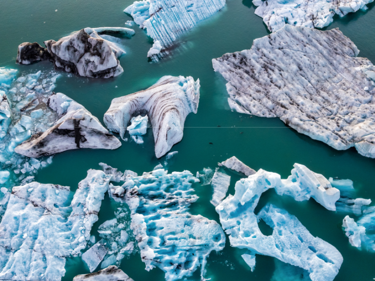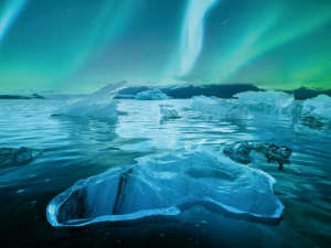 【傑古沙龍冰河湖】位於瓦特納冰川(Vatnajökull)南端,是冰島上最著名的冰河湖。此湖的湖水湛藍、清澈,很多形狀各異的大型冰塊、冰帽浮於湖面。