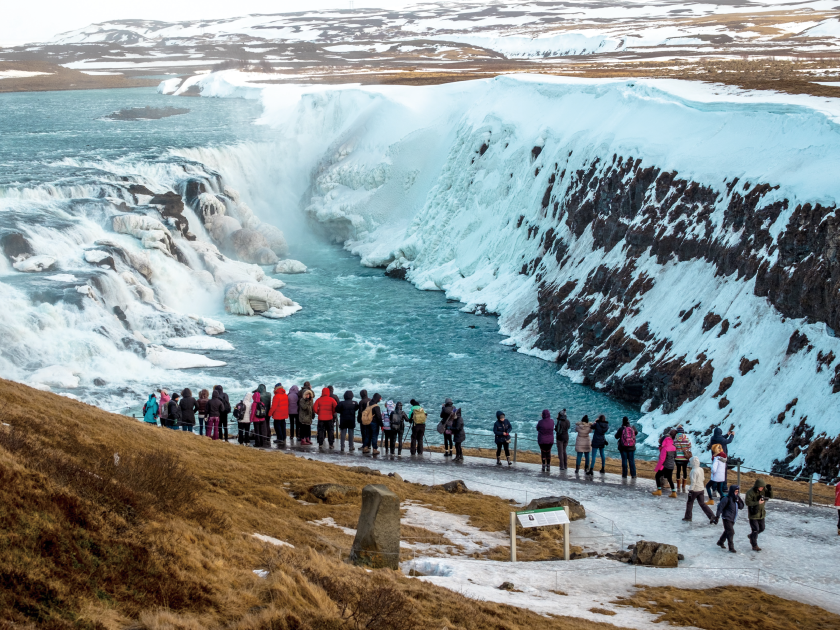 【黃金瀑布】冰島第二大瀑布,以宏偉壯麗聞名。瀑布分為上下兩層,水源來自附近冰川融水匯聚而成。
