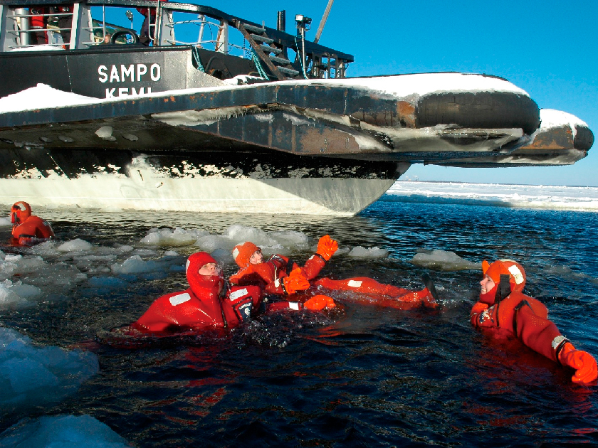 乘坐專業探險破冰船,欣賞氣勢磅礡的冰海,在波斯尼亞灣北部冰封海域,轟然衝破冰層,震撼絕倫。在三小時行程中,包括專人講解破冰船運作原理,壓軸精彩環節,各團友可挑戰極限,穿上船上配備的保暖浮水衣征服冰海,一嚐全球獨有的冰泳體驗;冰泳過後,團友更可踏足堅硬冰層,親身感受冰海的神秘奧秘。
