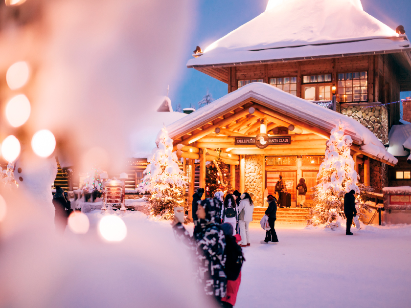 【聖誕老人村】可與聖誕老人拍照留念外,亦可前往聖誕老人郵政局選購蓋上聖誕老人村紀念印的明信片及別緻的紀念品。更可於北極圈的交界線上拍照留念,亦可獲發證書一張以作留念。