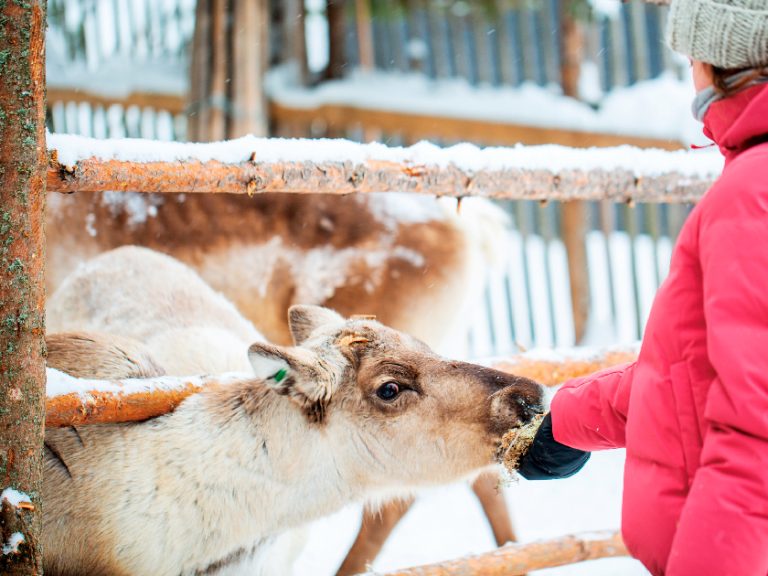 【馴鹿場-馴鹿拉雪橇】參觀馴鹿場,深入了解拉普蘭人的生活習慣以及北極圈內之馴鹿生態,更安排乘坐馴鹿拉雪橇。
