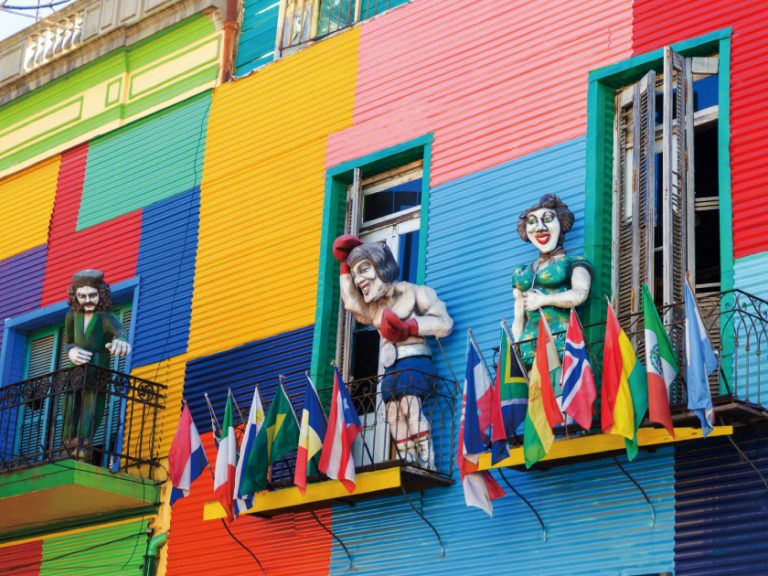 【保卡區】布宜諾斯艾利斯的發祥地,早期的新移民在這裡落地生根,由於貧窮,便用不同顏色所剩餘的油漆塗於牆上並畫上圖案,結果產生了色彩奪目,擁有地區獨特文化的小博卡區。