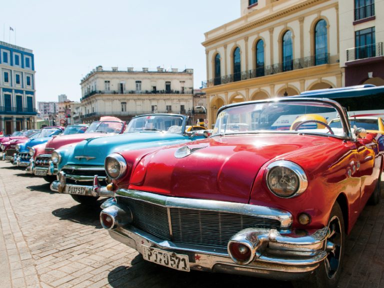 乘坐上美式古董車穿梭哈瓦那的街道,時光彷彿回到50年代,風格混雜的建築、繽紛中略帶陳舊的房屋正散發獨特色彩。