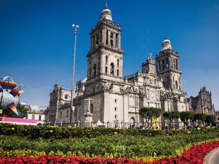 【墨西哥城觀光】城市中心的憲法廣場,四周是具歷史價值的西班牙式建築物,如總統府、全拉丁美洲最大的大教堂,還有國家藝術廳和國家郵局等。