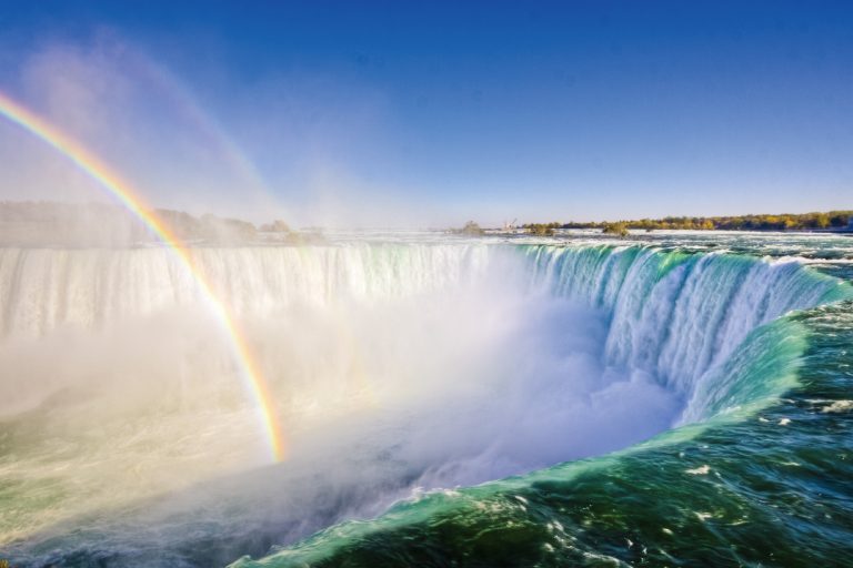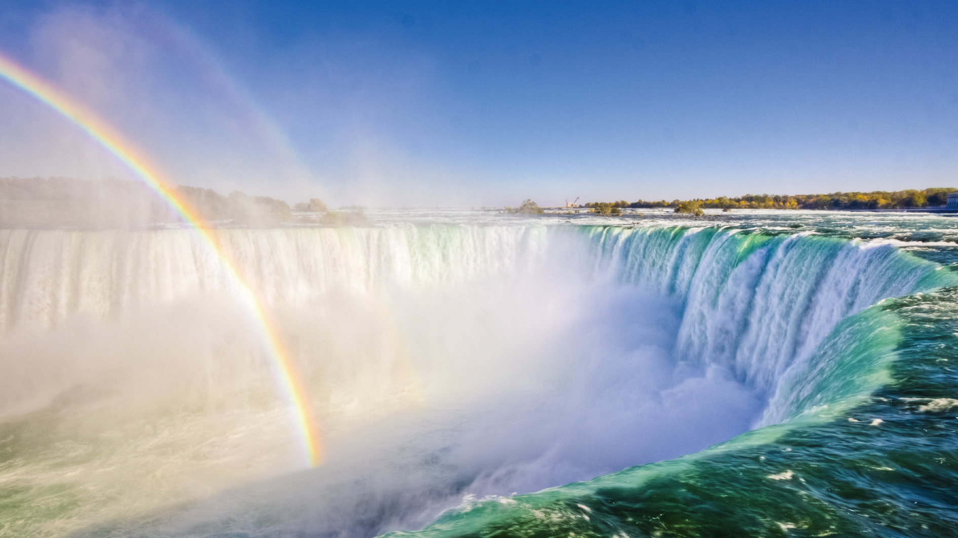 【尼加拉大瀑布】「尼加拉」在印第安語中意為「雷神之水」,印第安人認為瀑布的轟鳴是雷神說話的聲音。瀑布位於加拿大安大略省和美國紐約州的交界處,是世界第一大跨國瀑布。尼加拉瀑布源頭為尼加拉河,平均流量2,407立方米/秒,主瀑布位於加拿大境內,形似馬蹄,是瀑布的最佳觀賞地,可眺望「美國瀑布」、「馬蹄瀑布」及「新娘面紗瀑布」。特別安排乘坐遊船,穿梭於波濤起伏的瀑布間。晚上可步行前往維多利亞女皇公園,觀賞尼亞加拉大瀑布燈光夜景。
