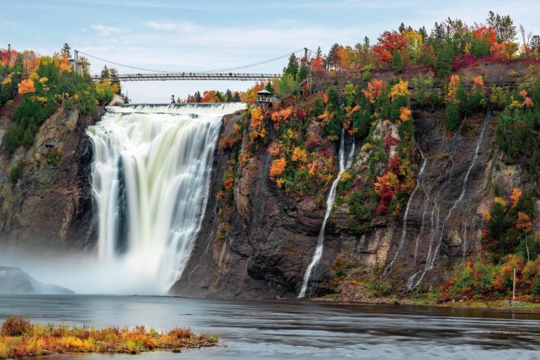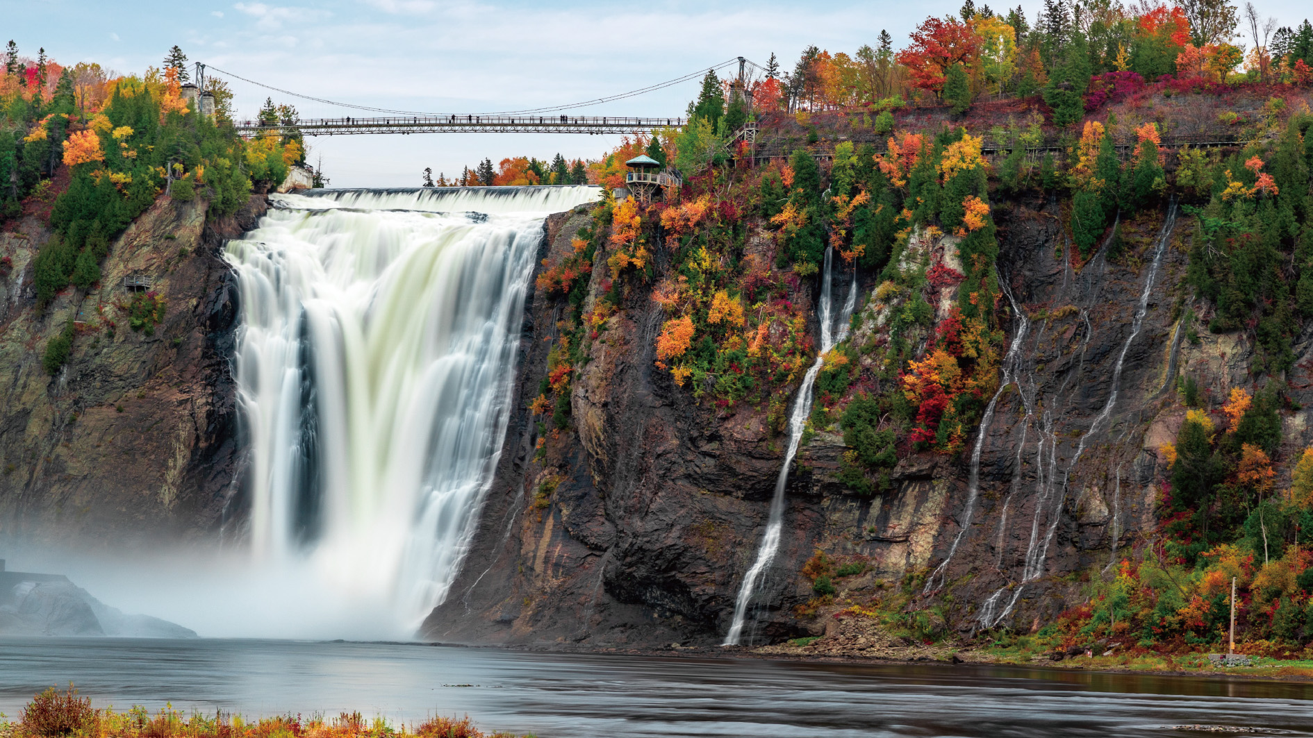 【蒙莫朗西瀑布】踏上沿著懸崖邊緣延伸至瀑布頂端的吊橋,近距離感受,比尼加拉瀑布高 30 公尺的磅礡震撼,特別安排搭乘纜車,可同時欣賞聖勞倫斯河及其周邊地區的美麗和壯麗景色。