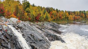 【聖安妮峽谷】地殼經過1.2億年長久地地質運動,而形成的沉積岩峽谷地形,又因冰河融化,形成瀑布、激流,穿插於峽谷之間,雖然沒有尼加拉瀑布壯觀,但峽谷與楓紅的景緻是專屬於這裡的美,跟日本細緻的庭園楓紅又是不同的風情。