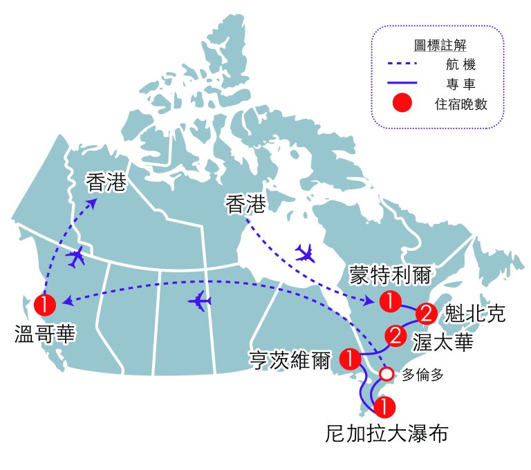 遊畢前往機場搭乘加拿大航空公司客機飛往温哥華,航機於同日晚上抵達溫哥華。