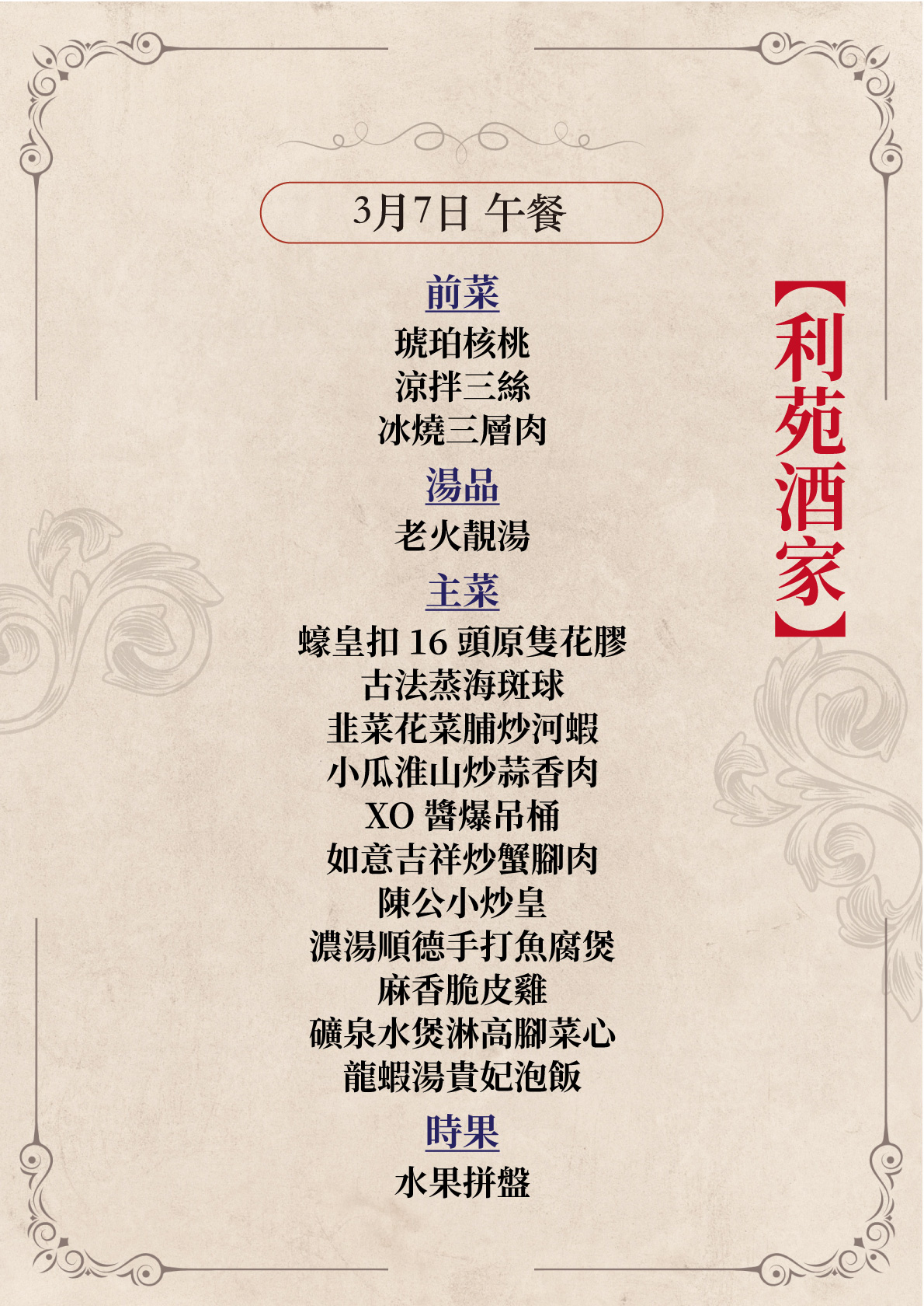 利苑酒家:精湛粵菜如詩般細膩,海鮮點心鮮香交融,演繹尊貴而動人的嶺南饗宴。
