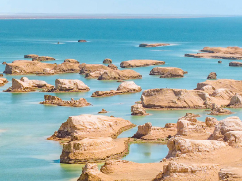 烏蘇特水上雅丹(含電瓶車):世界上已知唯一的水中雅丹地貌區,星羅棋布於湛藍的湖泊之中,形成「百島千鳥湖」的奇幻景象。