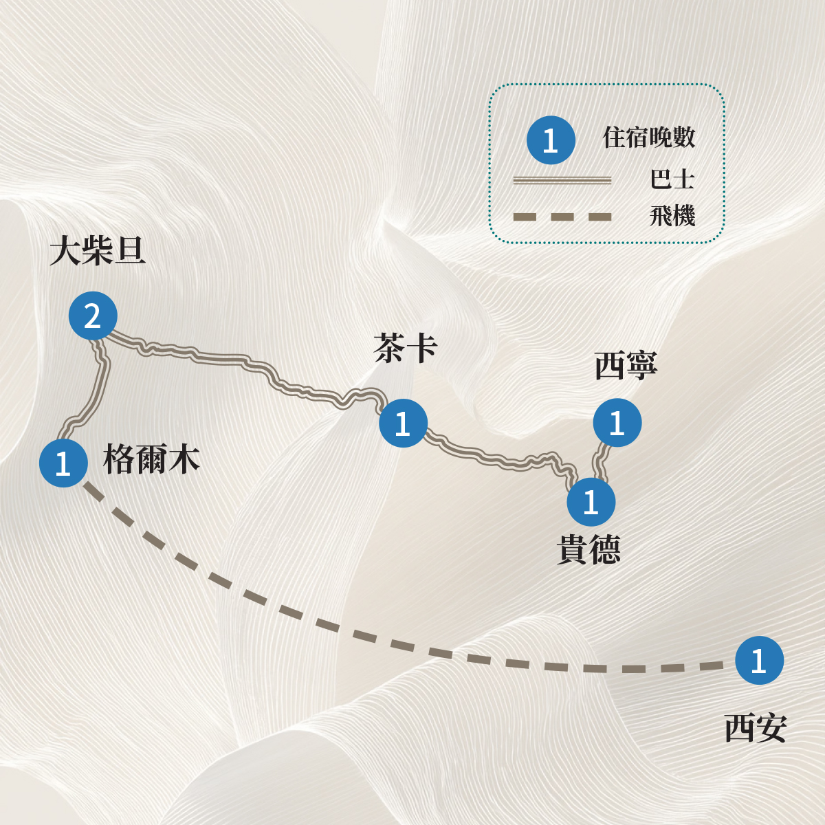 住宿:【當地四星】茶卡晚楓酒店(房可提供製氧機)或同級