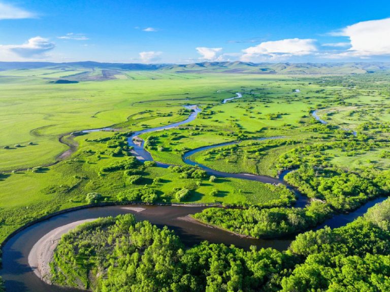 莫爾格勒河:內蒙古呼倫貝爾草原上的一條蜿蜒曲折的河流,觀賞初春解凍後的「天下第一曲水」風貌。