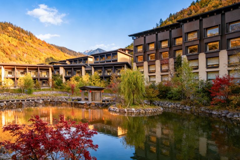 酒店坐落於世界遺產九寨溝景區附近,以藏羌文化爲設計靈感,客房均擁有震撼心靈的森林與山地景觀。