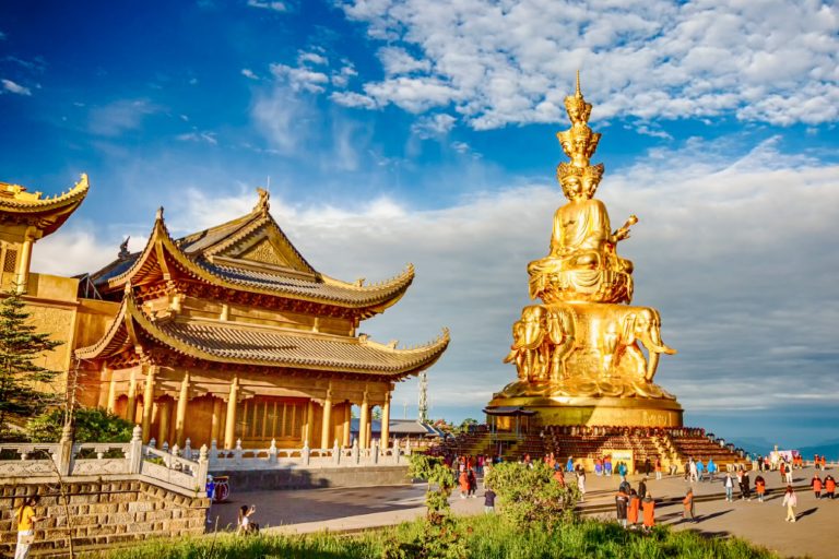 峨眉山景區: 舉世聞名的世界文化與自然雙遺產地。 它以其 「雄、秀、神、奇」的自然風光與源遠流長的佛教文化融為一體, 素有 「峨眉天下秀」 之美譽,更是中國四大佛教名山之一,為大行普賢菩薩的根本道場。