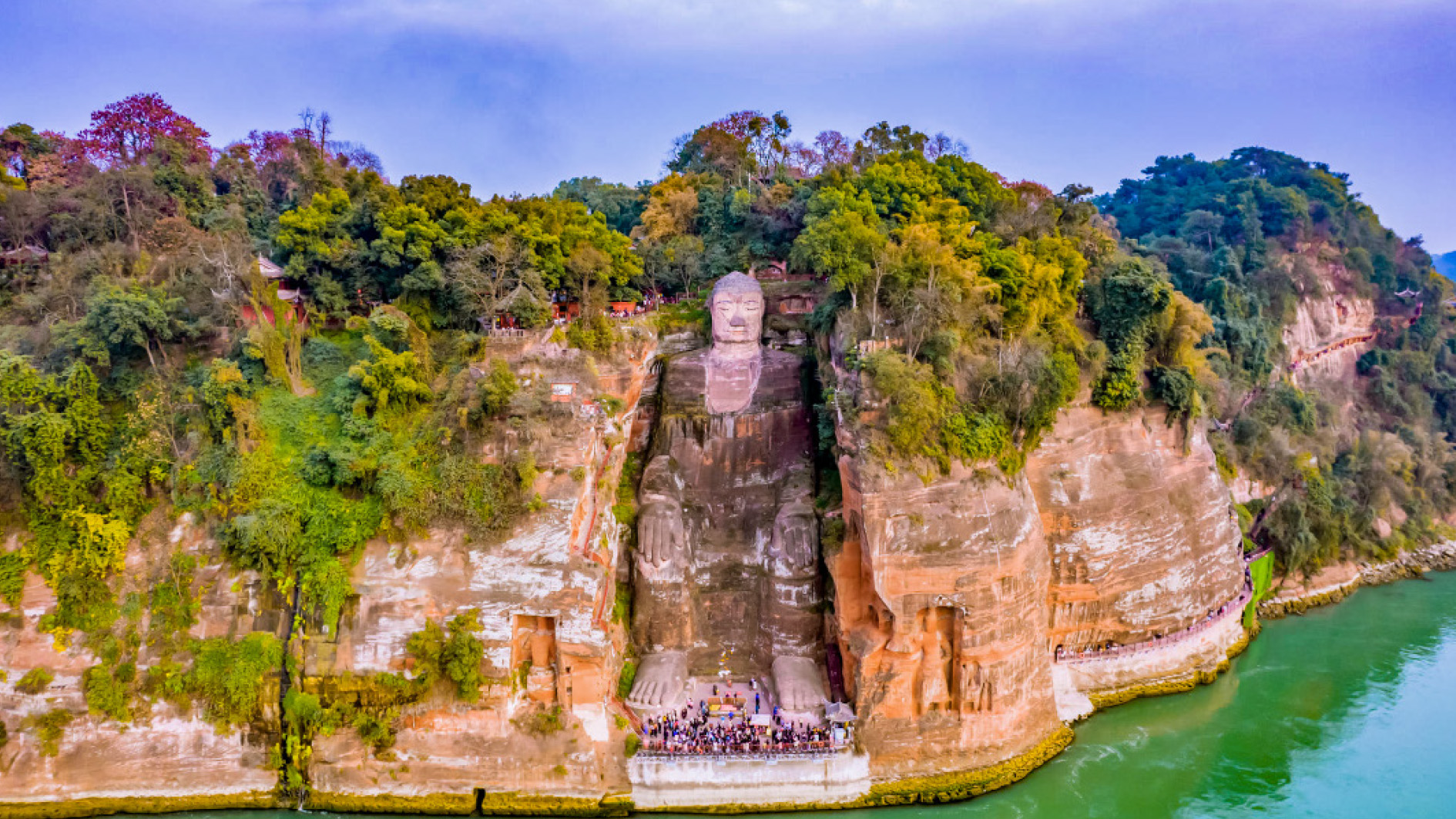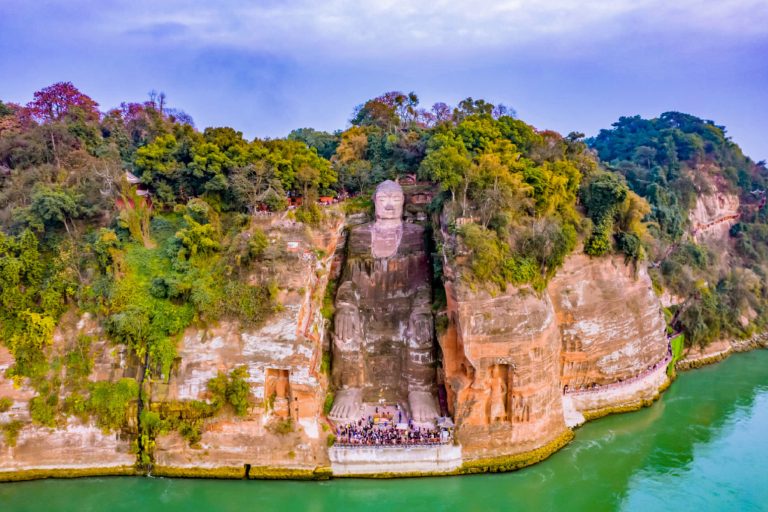 樂山大佛(含遊船):世界上最高的石刻佛像,位於四川樂山市岷江、 青衣江、大渡河三江匯流處,是一尊唐代彌勒佛坐像。
