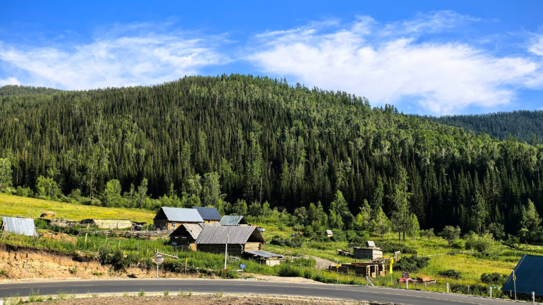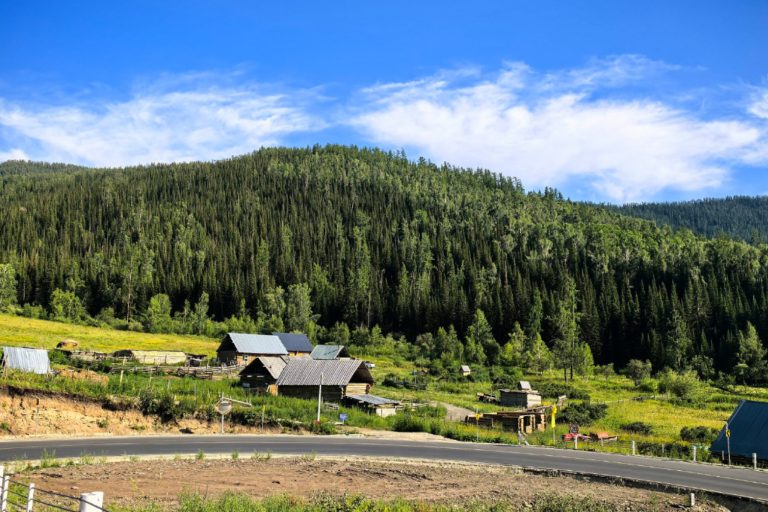 全天穿行 【阿禾公路景觀大道】 ,沿途賞烏希裡克濕地、托勒海特草原風光,抵達前往遊覽【禾木村】。