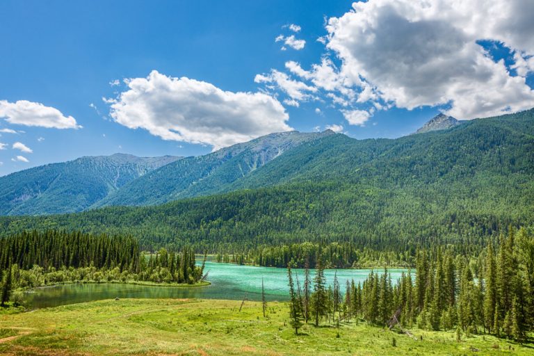 喀納斯景區(含 VIP 包車):臥龍灣→月亮灣→神仙灣→觀魚臺(含區間車)。喀納斯是北疆仙境,三灣碧水蜿蜒,觀魚臺可俯瞰湖景與雪山。