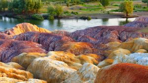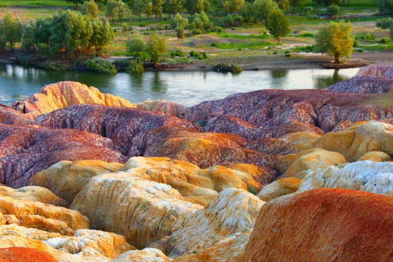 五彩灘:五彩灘岩石色彩斑斕,額爾齊斯河蜿蜒流過,一河兩岸景致迥異。