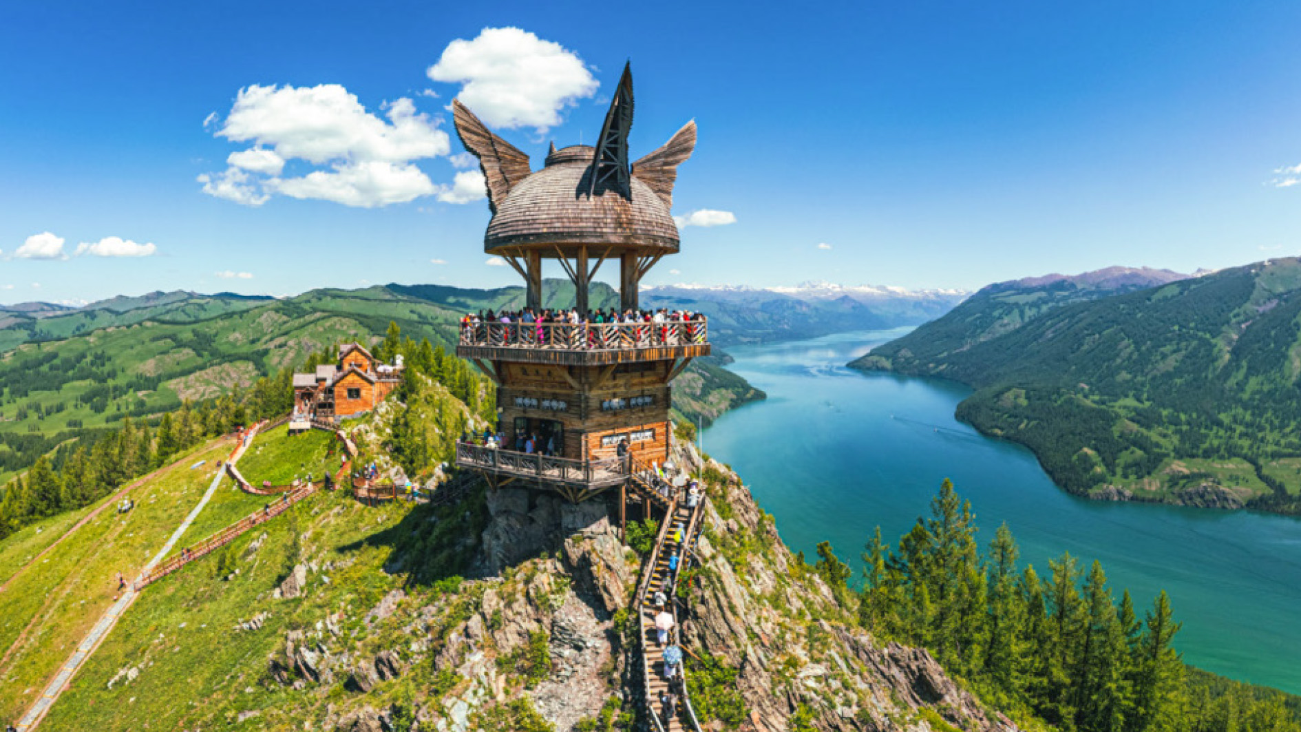 禾木圖瓦人村落(含區間車):禾木被譽為「中國最美古村」,原木小屋錯落有致,圖瓦人保留獨特民俗,哈登觀景臺可俯瞰全村晨霧與林海。