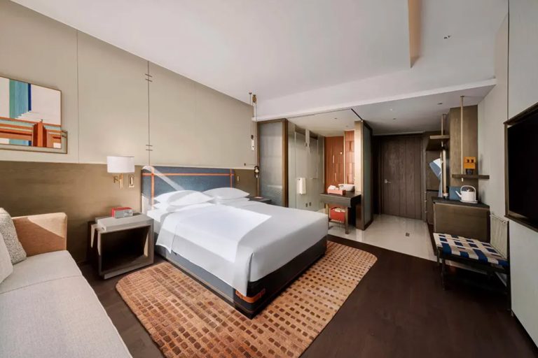 酒店融合傳統與現代美學,以細膩的「禦窯金磚」工藝元素致敬蘇州深厚的文化底蘊與創新精神。酒店集商務、休閑與長住功能於一體,為賓客營造舒適與和諧的居停體驗。酒店秉持包容與關懷的待客之道,亦貼心提供寵物友好客房,讓賓客與愛寵共享自在旅程。