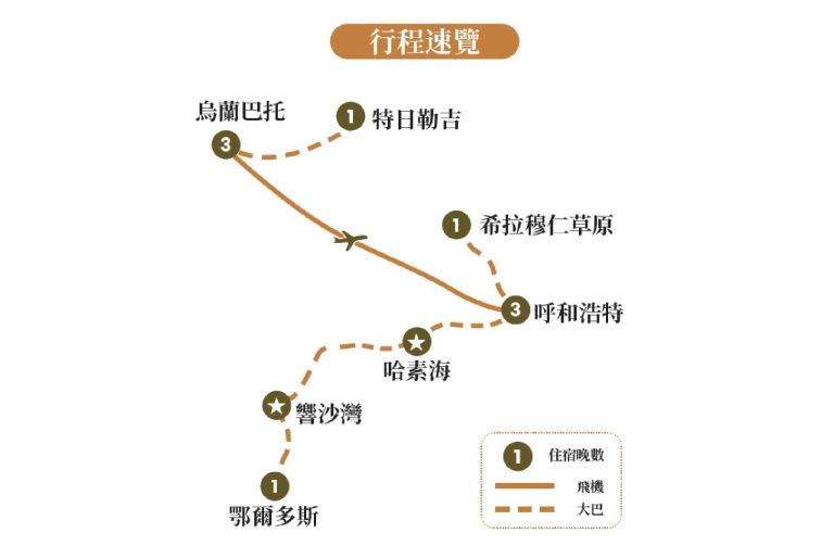 遊牧部落:「深度體驗蒙古遊牧生活」接受牧民傳統迎賓禮、品嚐醇香奶茶及乳製品、騎馬 / 騎駱駝 / 犛牛拍照、觀賞蒙古包搬遷大隊實景演繹等。