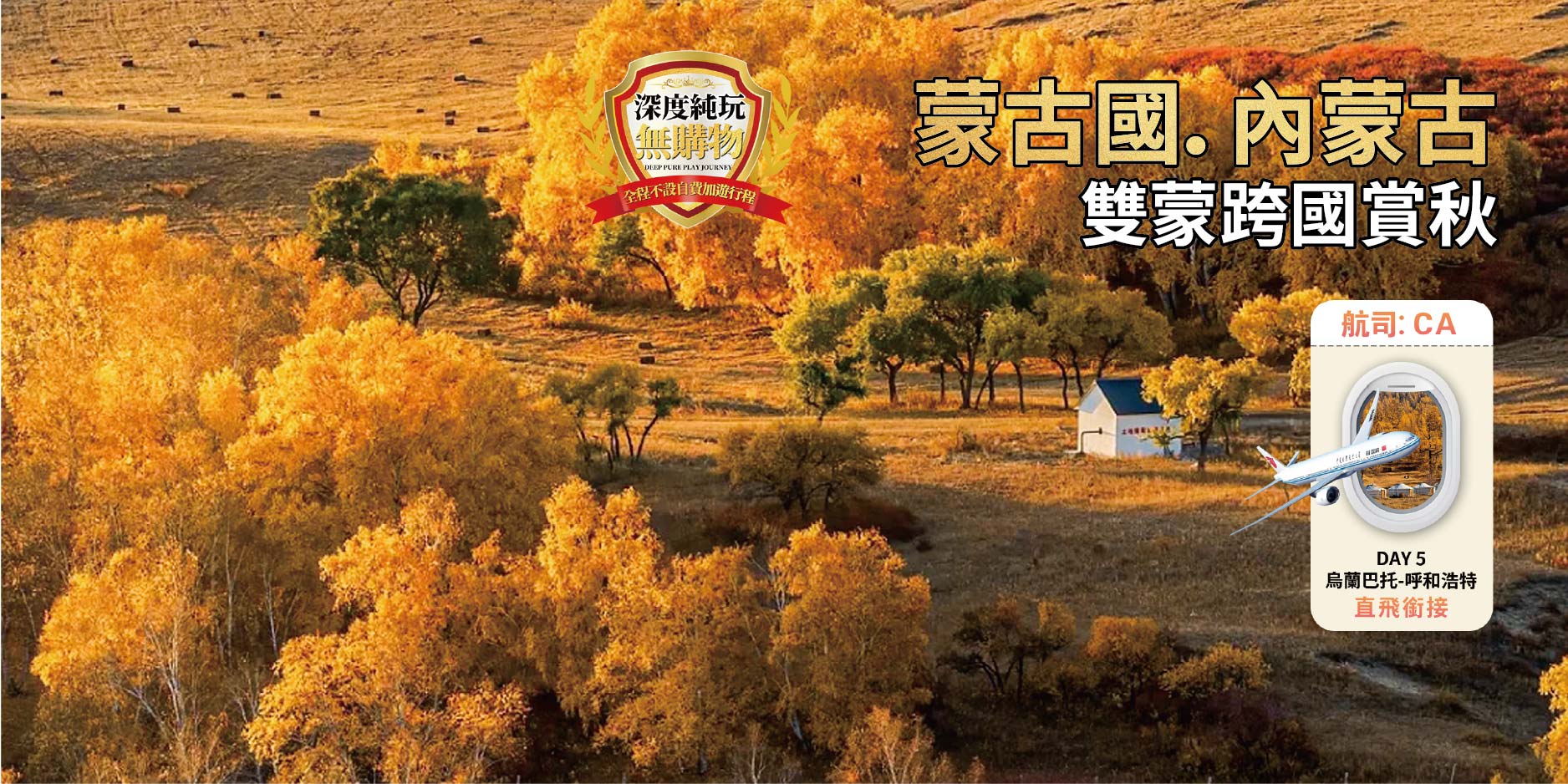 膳食:早:酒店 | 中:遊牧部落特製蒙餐料理+烤全羊|晚:香格里拉酒店自助餐
