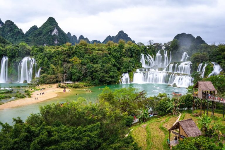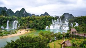 中越德天跨國瀑布: 亞洲第一、世界第四大跨國大瀑布,位於中國和越南邊境處的歸春河上游,瀑布氣勢磅礴、蔚為壯觀。
