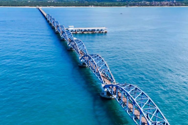 藍橋:藍橋長 2.3 公里,寬 12 米,是一座藍色的跨海大橋,以其獨特的藍色鋼結構與蔚藍的大海相映成趣。