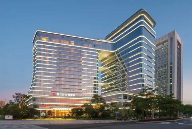湛江白天鵝酒店是由湛江市城市發展集團有限公司投資建造,冠名“白天鵝”酒店,並匠心營造“碧海長天 客如潮來 ”的城市郵輪形象,委託廣州白天鵝酒店管理有限公司全權管理。 酒店擁有多種奢適客房,1200平方米的無柱式宏圖宴會廳,傳承白天鵝飲食文化精髓的玉堂中餐廳,薈萃寰球美食的絲路西餐廳,並配備大堂吧、星空吧、星空泳池和智能化的健身中心,致力營造成粵西高端商務服務豪華品牌酒店。