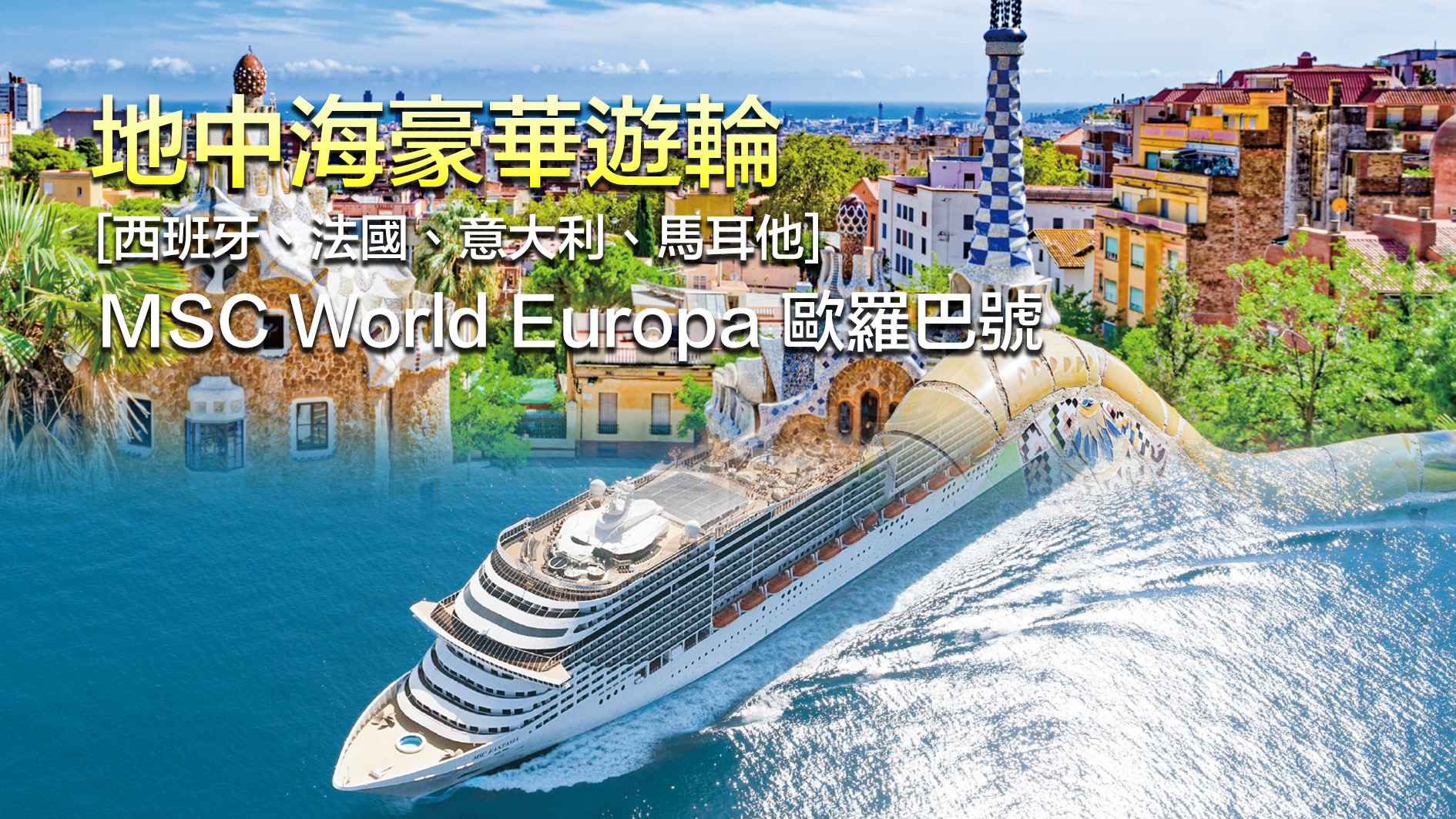 地中海郵輪「歐羅巴號」乘風破浪,在海上航行,各團友可盡享船上各類設施及娛樂節目,可謂包羅萬有,如健身室、桑拿房、水療美容中心。船上更備有世界各式美食,應有盡有,動靜皆宜。亦可與朋友無拘無束地享受海上假期。
