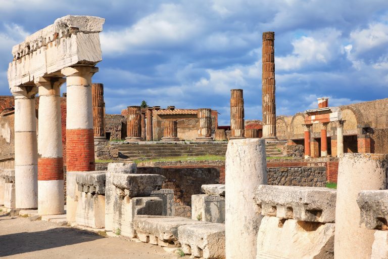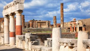 【龐貝古城】羅馬帝國時期建築遺跡,此城於公元 79 年因維蘇威火山爆發,遭大量火山岩灰覆蓋而埋在地下,直到1748年才被挖掘出來,今天出土遺跡中包括神殿、市集和宮殿,備受考古學家推崇,而濕壁畫殘餘的遺跡,題材前衛令人大開眼界。
