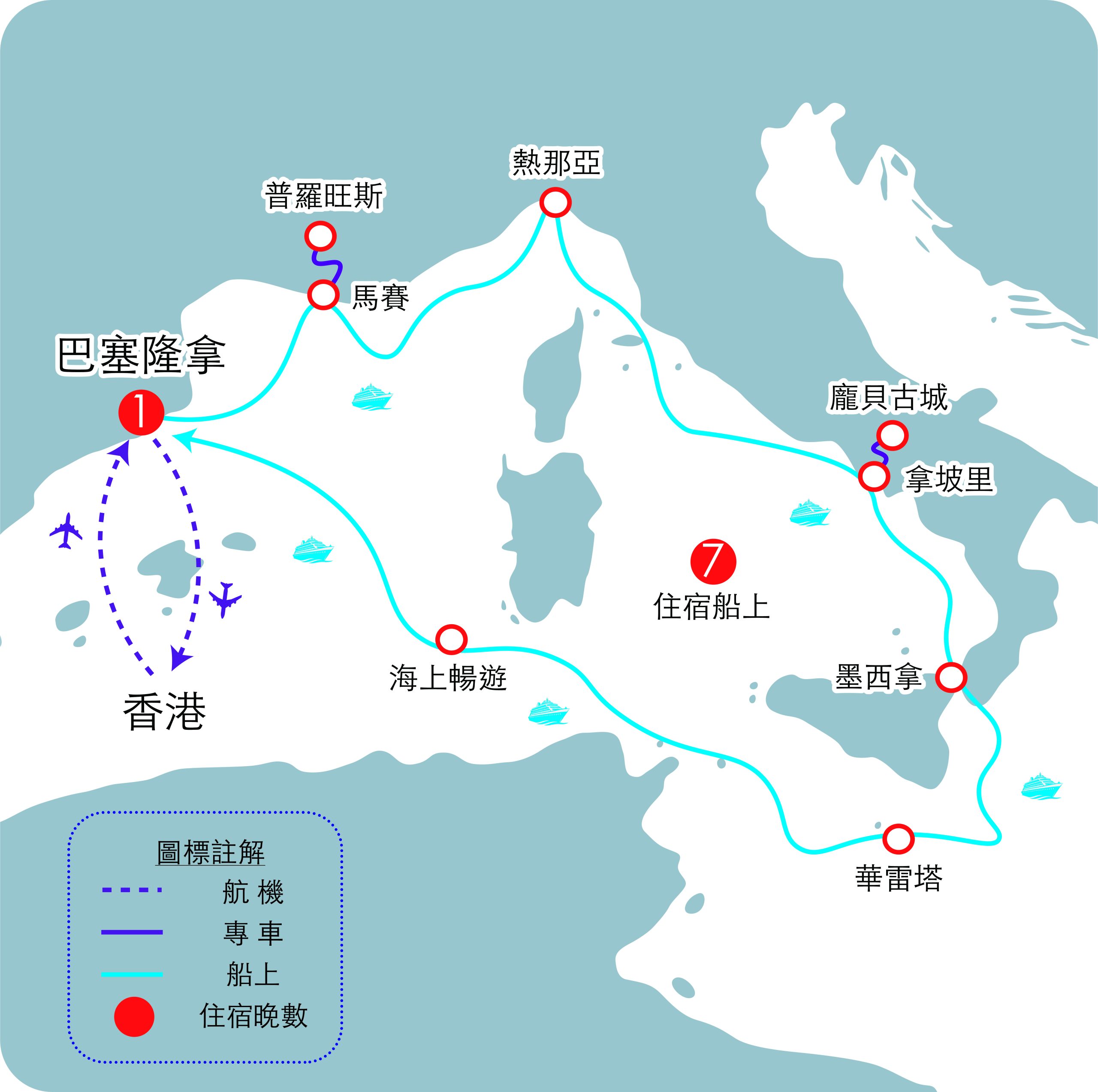 郵輪於早上抵達巴塞隆拿。早餐後辦理登岸手續後,隨即展開市內觀光,乘車途經哥迪的代表作~面譜屋,稍後前往Ramblas大街購買紀念品。
