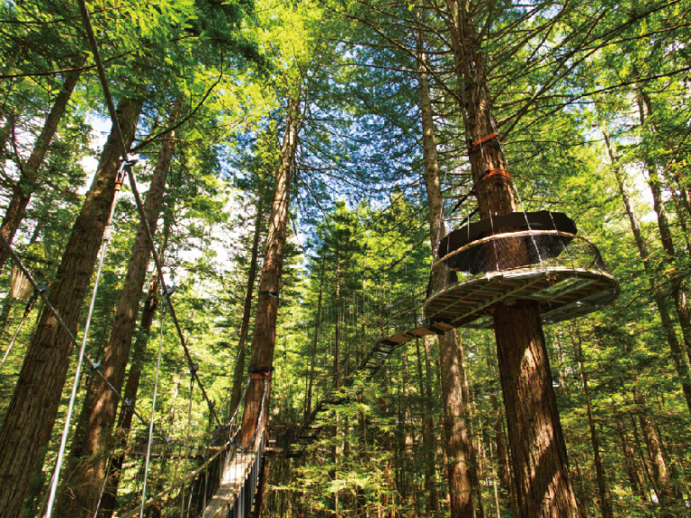 【紅木樹林空中漫步體驗】穿梭於過百年的紅杉樹林、懸索橋與觀景台間,呼吸自然靈氣,亦能觀賞磅礡景致,令人忘卻世俗煩惱。