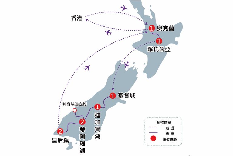 早餐後,乘車前往機場,搭乘內陸航機飛往奧克蘭。航機抵達奧克蘭後,隨即前往羅托魯亞。