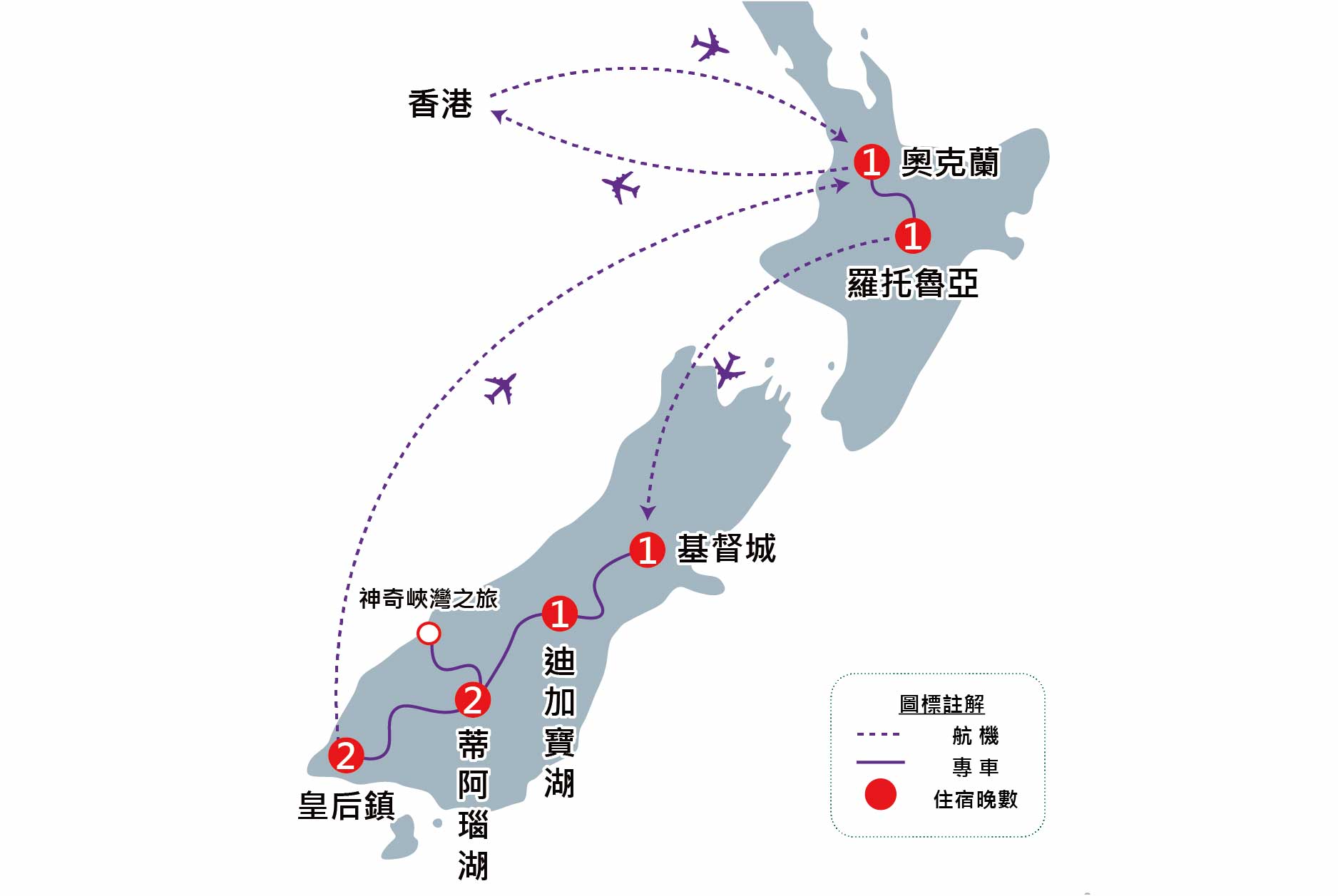 航機於早上抵達,辦理入境手續後前往內陸機場,乘坐內陸航機飛往基督城。