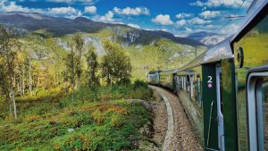 【FLAMSBANA高山火車】乘火車由禾斯前往邁蘭達,轉乘高山火車前往弗拉姆,沿途跨越崇山峻嶺,繞過奔流傾瀉的瀑布,沿途風光明媚盡收眼底。