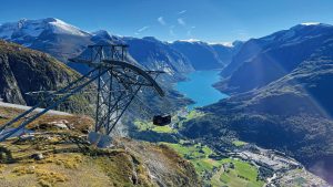 【羅恩高空纜車】世界最陡纜車之一,5分鐘直達海拔1011米的Hoven山頂,360度環視峽灣、湖泊與冰川;山頂設有餐廳、咖啡館與紀念品店。