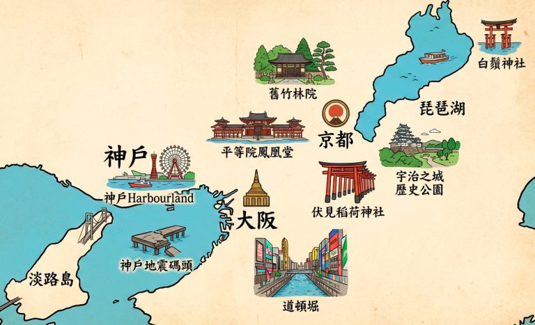 【神戶地震碼頭】位於神戶港填海區,1987年建成,其名源自19世紀的美利堅碼頭。公園以開放式設計聞名,園內設有著名雕塑「魚之舞」、紀念時尚節的「紫陽花之鐘」,以及神戶海洋博物館與神戶港塔等地標建築。東側保留1995年阪神大地震災後原貌,作為災難紀念象徵,吸引遊客前來反思與祈福。