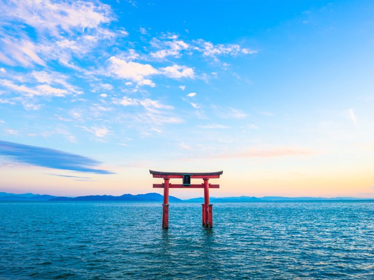 【白鬚神社】擁有「近江的嚴島」之稱的白鬚神社,正如其名,主要祭祀象徵長生長壽的神祇,亦可祈求結緣、開運招福、事業順遂與人際和諧。神社最廣為人知的,是矗立於湖中的鳥居;伴隨日光變化,清晨、白晝、黃昏時分呈現迥異的絕美景致——時而莊嚴肅穆,時而神秘寧靜,獨特魅力使其成為眾多攝影愛好者的必訪朝聖之地。