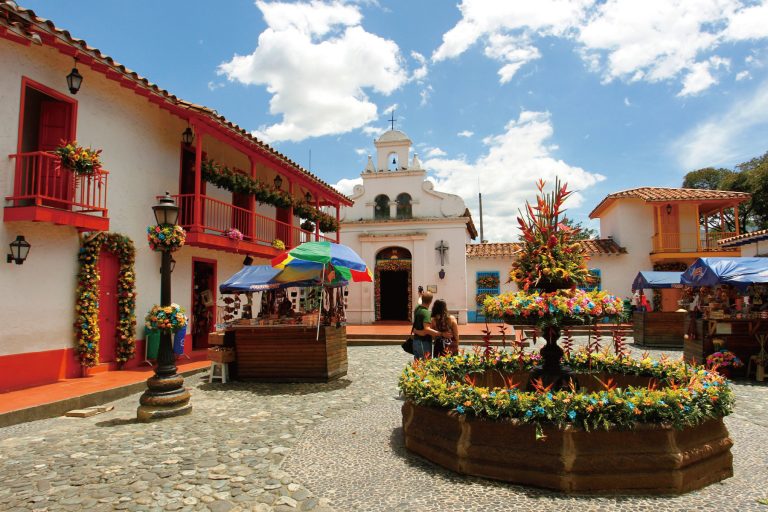 【派薩小鎮】位於哥倫比亞麥德林市中心的努提巴拉山山頂,是一座仿造20世紀初安提奧基亞傳統風格的微型村落。它是熱門的觀光景點,以彩色白灰建築、中心廣場、教堂、噴泉及手工藝品店為特色,並能360度俯瞰麥德林市區與山谷的壯麗景色。