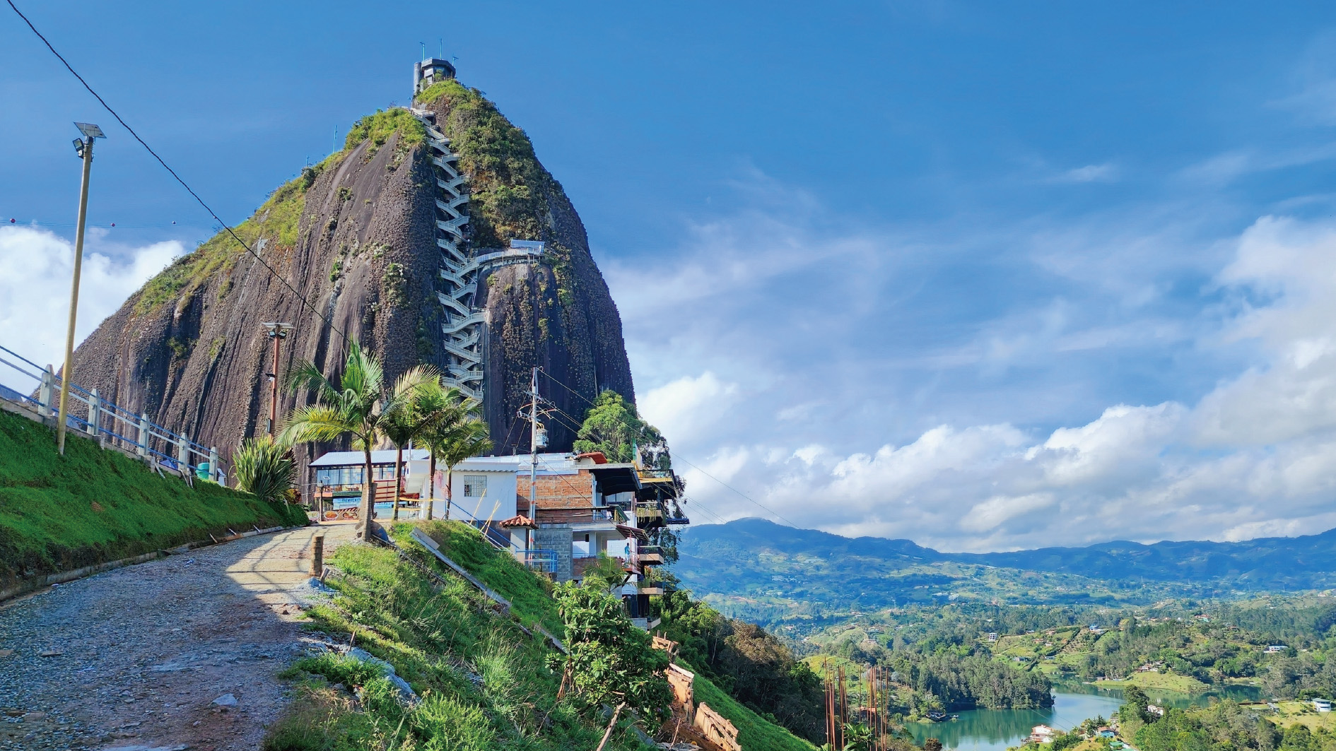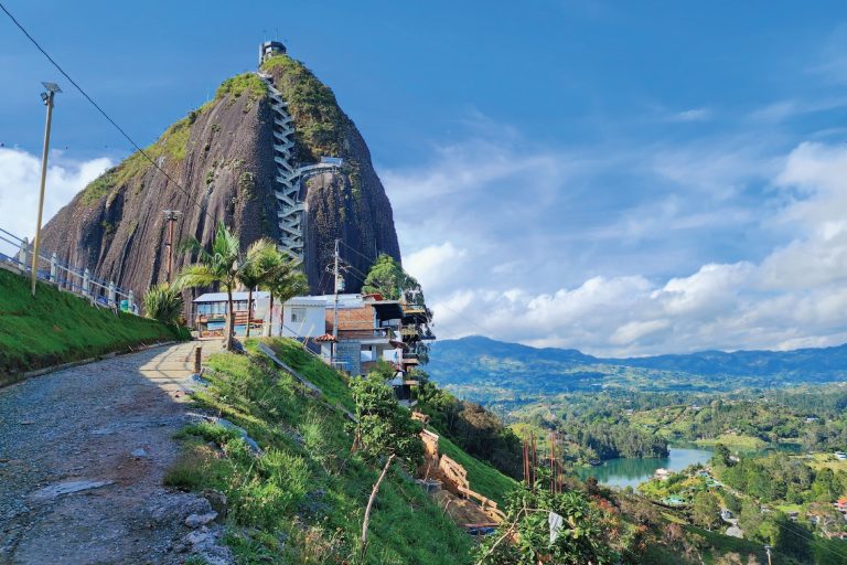 【瓜塔佩巨岩】岩石高約220米,在安第斯山脈中鶴立雞群地豎立了數百萬年,是當地原居民塔阿美印第安人非常崇拜的巨石。巨岩設有約650級的階梯,可登上岩頂上觀景台眺望周圍廣闊而美麗的湖泊風景。