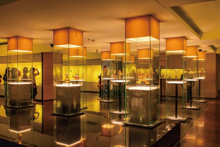 【黃金博物館】設立於1939年,由哥倫比亞國家銀行將失落的器具慢慢地收集起來,並於1968年搬遷至目前的位置。博物館發展至今,收藏了公元前20世紀至公元16世紀約2萬6千多件金器具,共約5萬件收藏品。