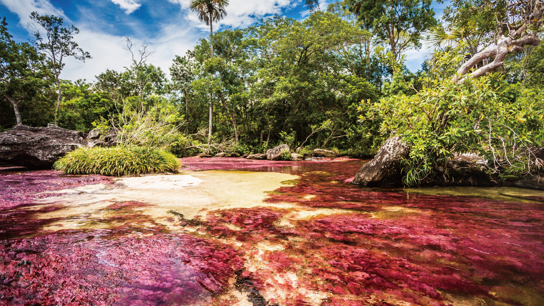 【卡尼克里斯塔萊斯河】又名五色河,其驚人的色彩,甚至被稱為世界上最美麗的河流,已被列入此生非去不可的50旅遊景點之一。河裡長滿各種各樣的水生植物,河水非常清澈。每年6月至11月,河床上的植物轉變成綠色,橙色,紅色,鮮粉紅色,黃色,甚至藍色,色彩班駁。這些植物緊緊貼在岩石上,河流流動時產生夢幻般的動態。