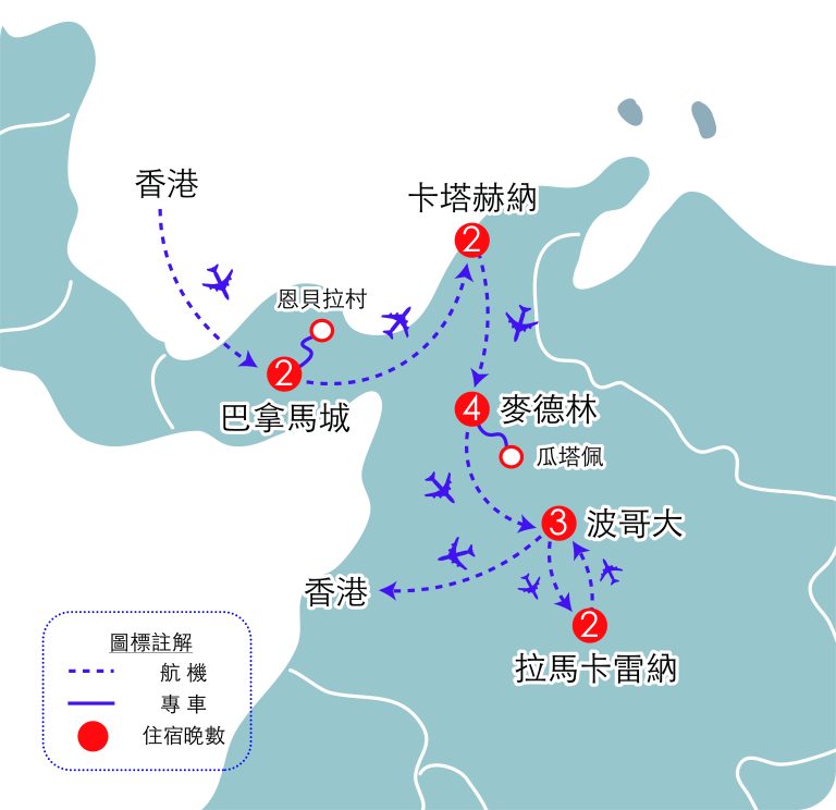 是日於香港國際機場集合,由翠明假期領隊陪同下,乘坐土耳其航空公司客機經伊斯坦堡轉機飛往巴拿馬首都巴拿馬城。